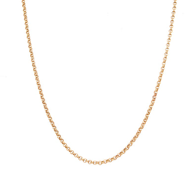 Pre- owned round link micro belcher chain made of 9ct yellow gold. Comprising solid plain polished links, ideal to carry a pendant. Secured by a lo...