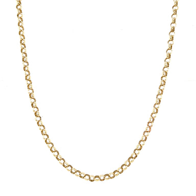 Pre- owned round link belcher chain made of 9ct yellow gold. Comprising hollow plain polished links, suitable to carry a pendant. Secured by a lobs...