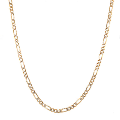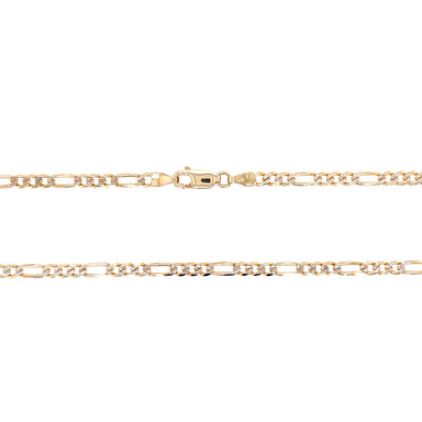 Pre- owned Figaro link chain made of 9ct yellow gold. Comprising three close curb links separated by an elongated link in a uniform pattern. Solid ...