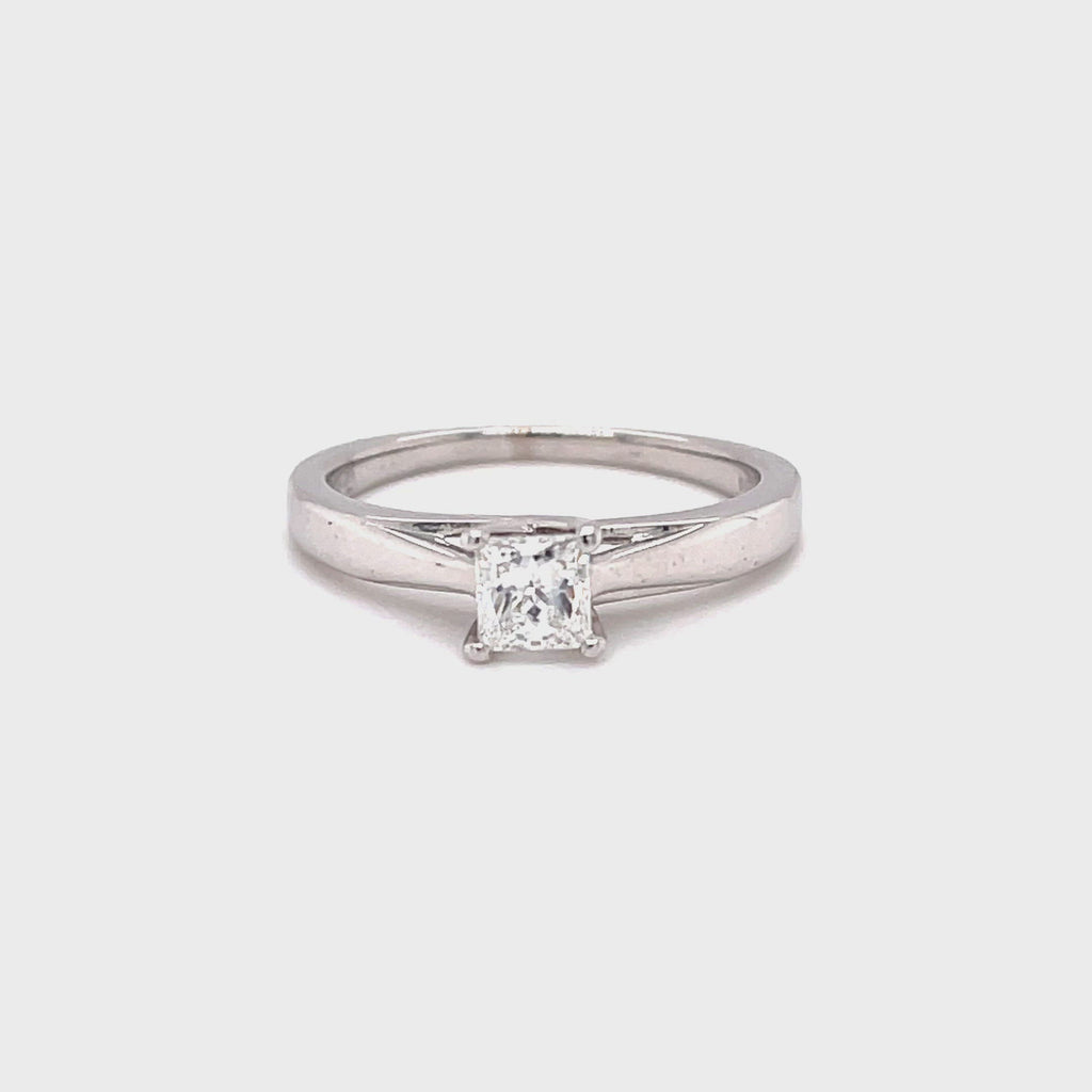 18ct White Gold 0.40ct Princess Cut Diamond Solitaire Engagement Ring Certified E SI