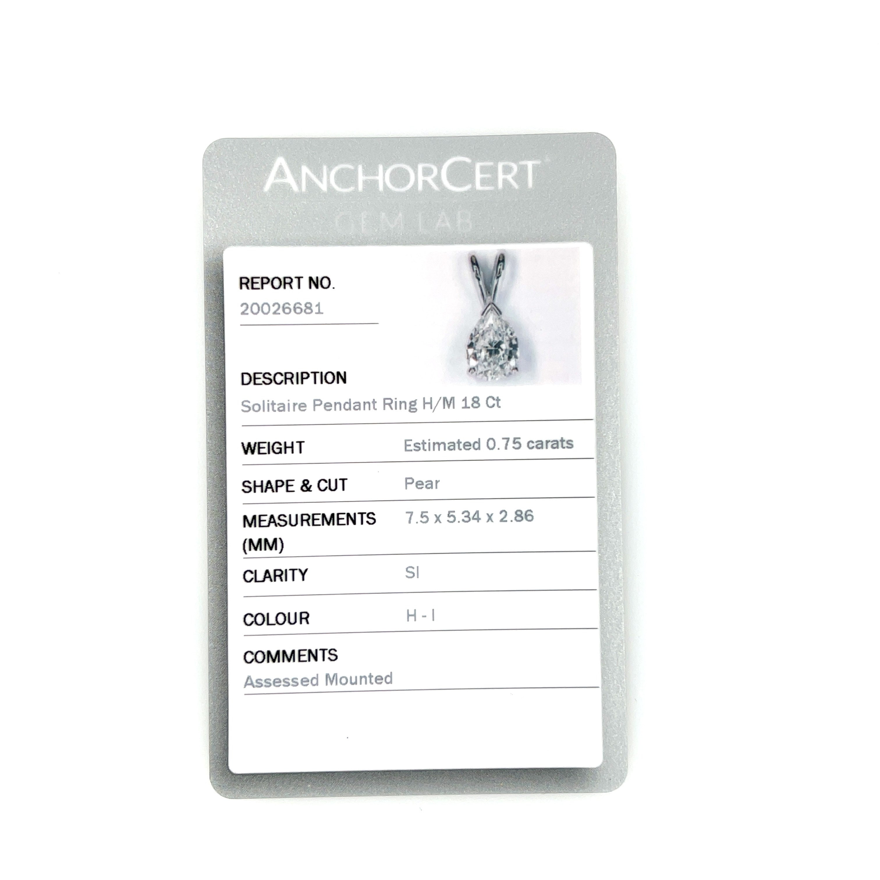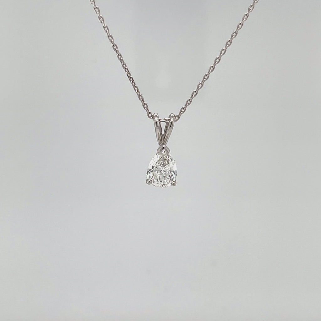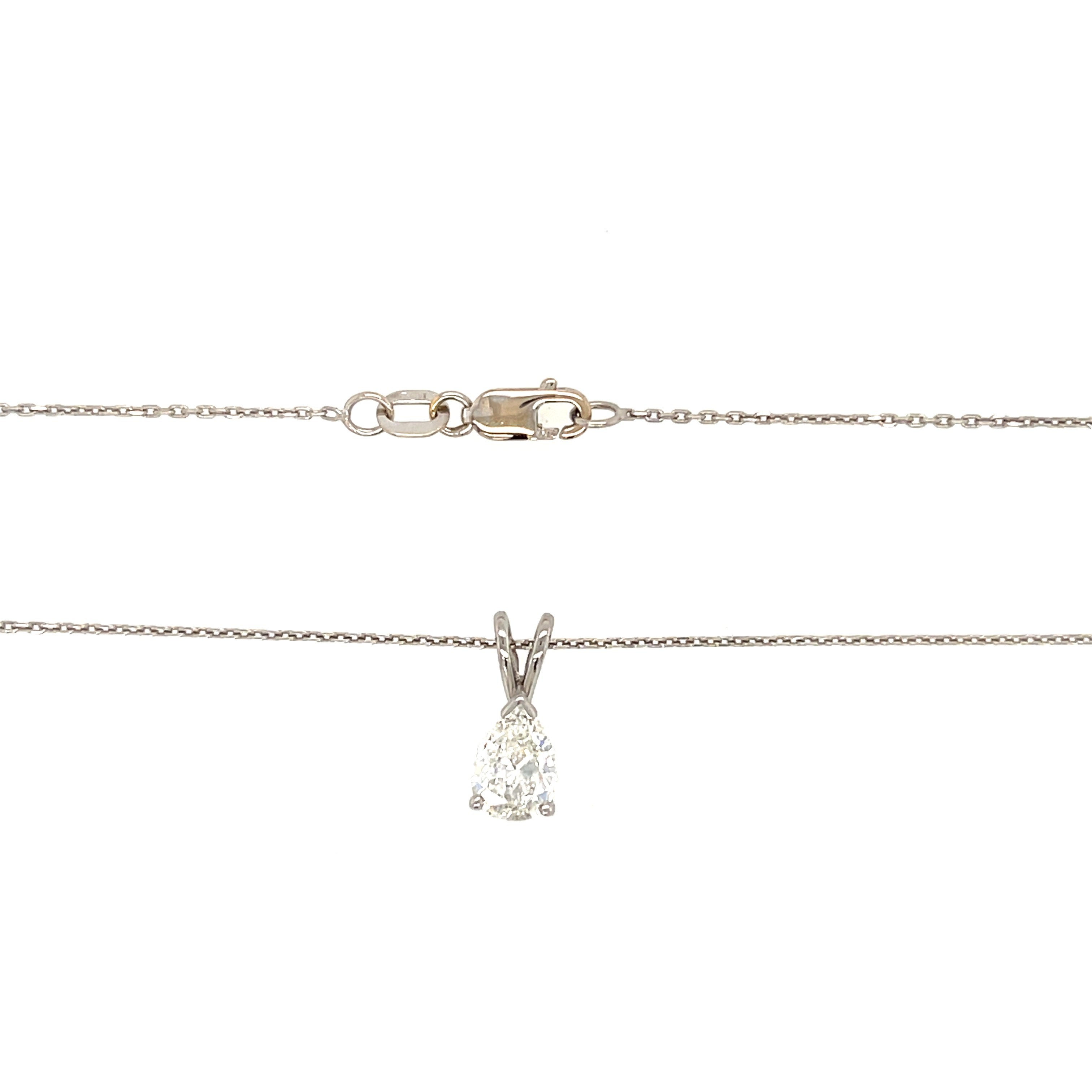 18ct White Gold 0.75ct Pear Brilliant Cut Diamond Solitaire Pendant Certified H SI SOLD