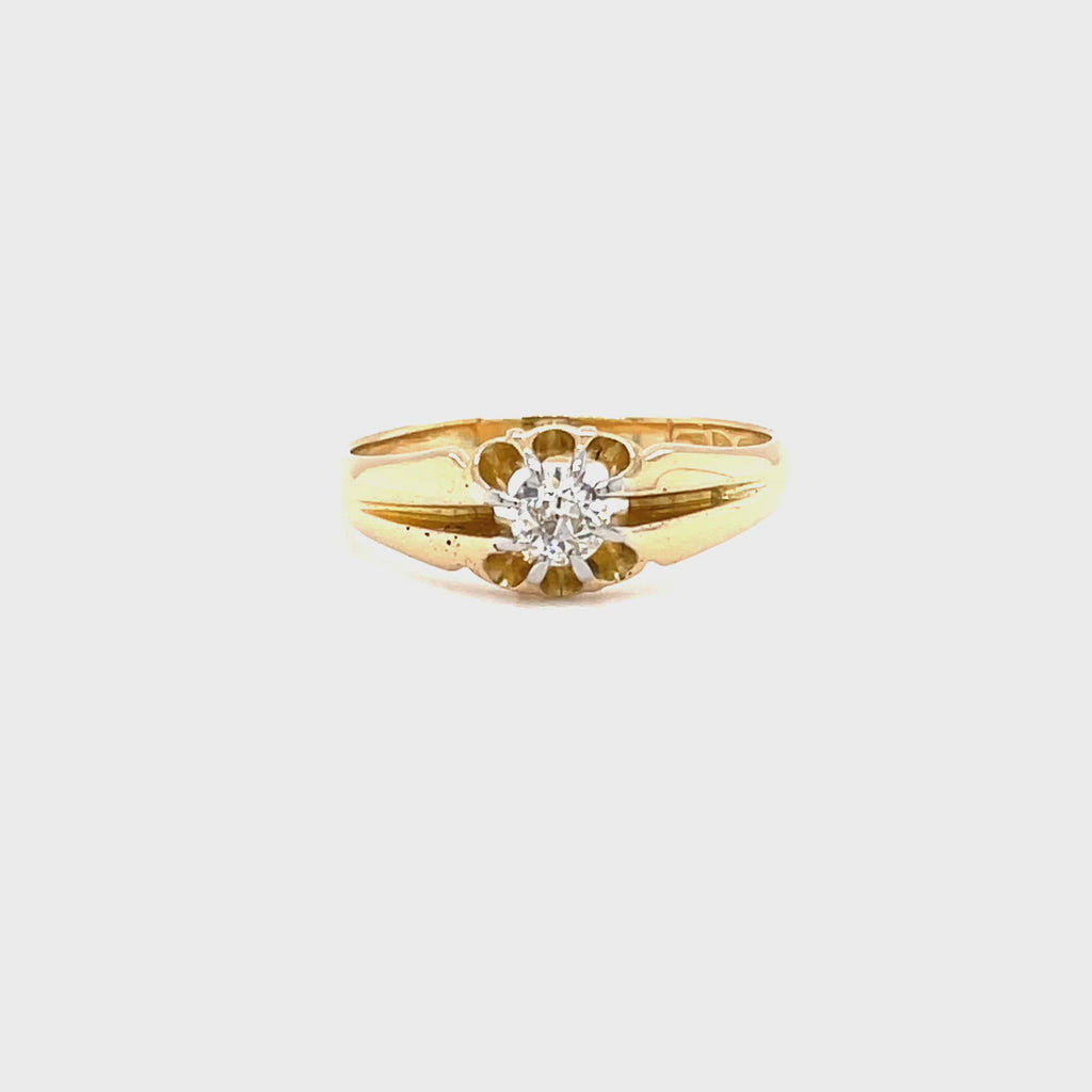 Antique 18ct Yellow Gold 0.33ct Old European Cut Diamond Gypsy Ring Chester 1911