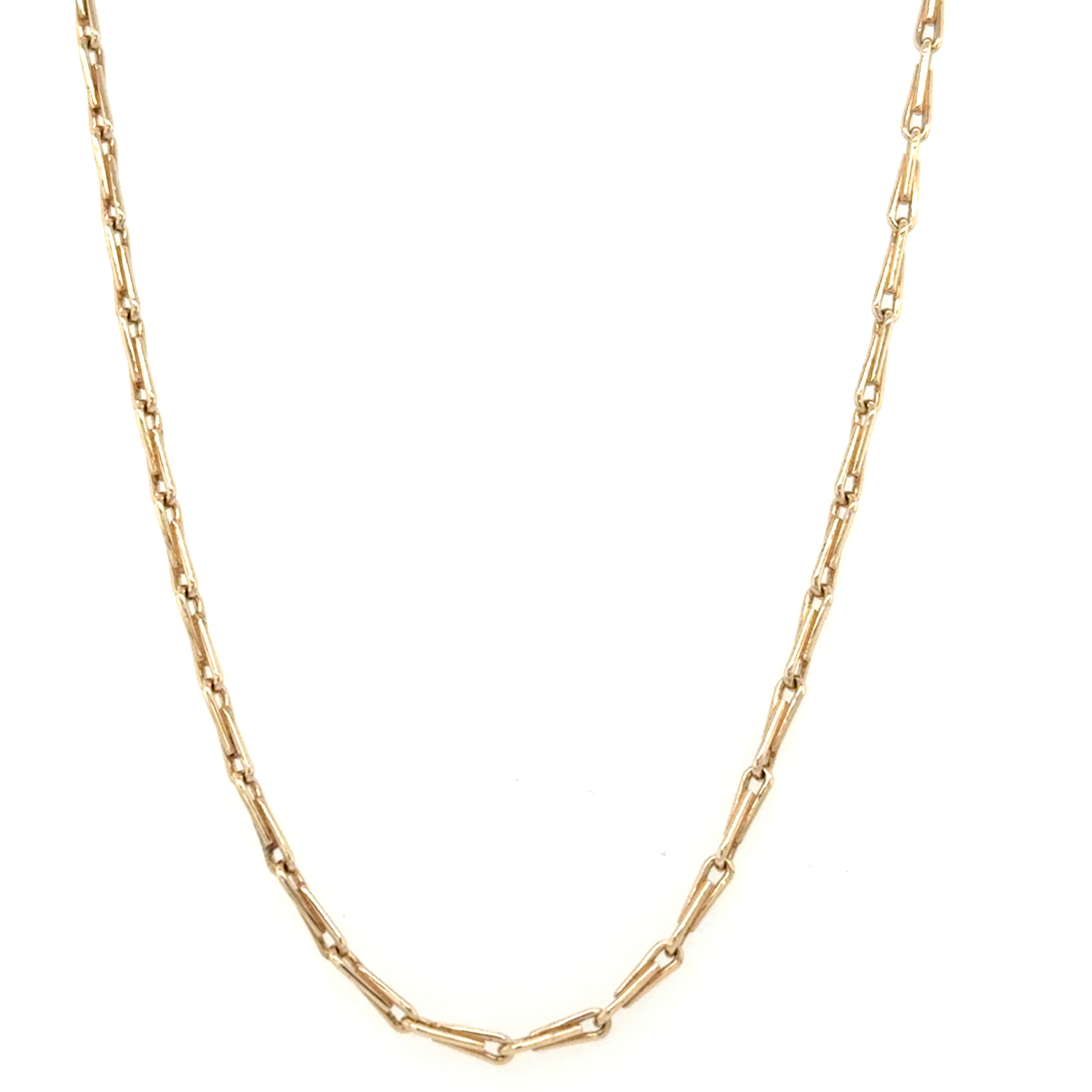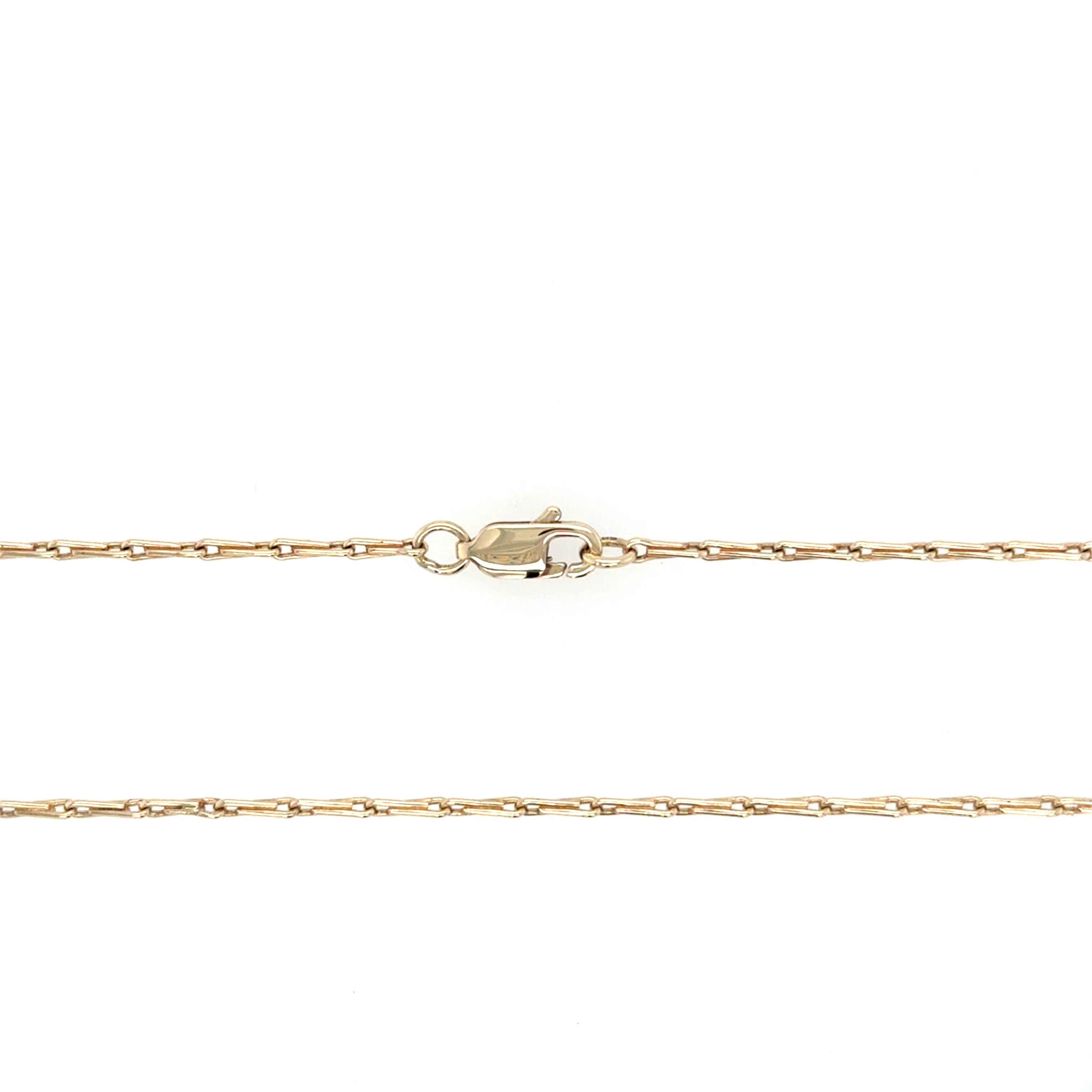 Pre- owned. A 9ct yellow gold 'hayseed' link chain. This link style takes it's name from the resemblance to the hayseed grain. A more unusual chain link style, suitable to be worn on it's own or to carry a pendant. Secured by a lobster trigger fastener.
