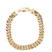 The double curb link comprises two interwoven links in an overlapping style, creating a closer gap than a standard curb link alone.