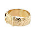 Antique. A fine quality antique buckle ring. Made of 18ct yellow gold with belt buckle detail and engraved orange blossom pattern across the band.